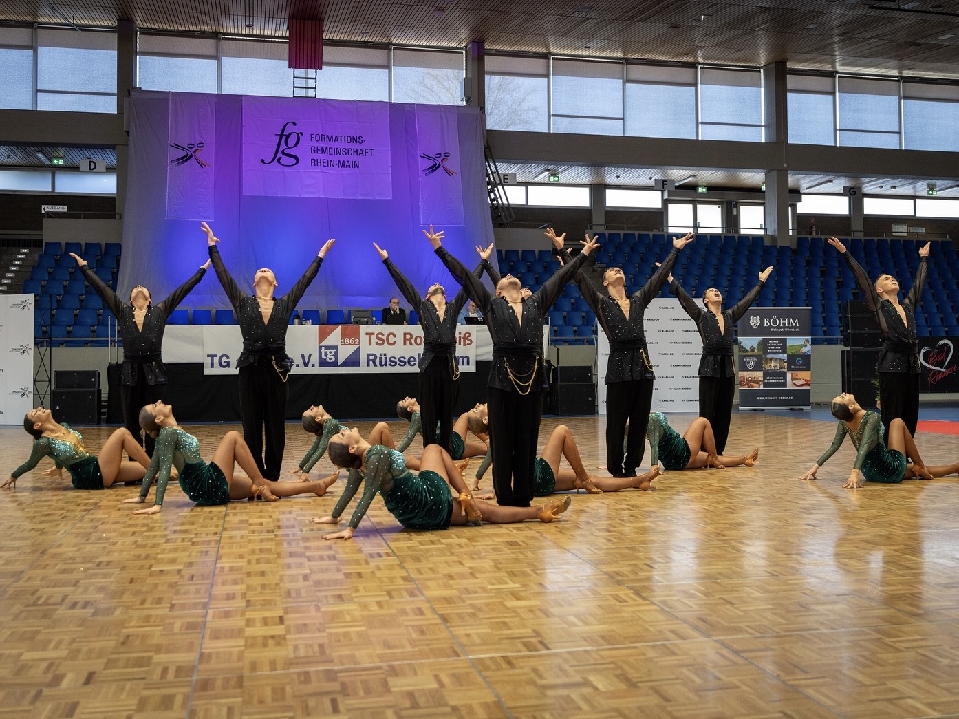 Das letzte Turnier des B-Teams fand am 08. März 2025 in Rüsselsheim bei der Formationsgemeinschaft Hofheim/Rüsselsheim/Fischbach statt. Krankheitsbedingt leider erneut mit nur sieben Paaren, zeigte das Team ein letztes Mal seine Choreographie zum Thema „Arabian Nights“. Trotz dieser Herausforderung stand das Turnier im Fokus, den Teammitgliedern mehr wertvolle Erfahrung auf der Fläche zu ermöglichen. Im kleinen Finale ertanzte sich das Team mit der Wertung 7–7–7–6–7 den siebten Platz und schloss damit die Regionalliga Süd TBW Latein auf dem sechsten Tabellenplatz ab.