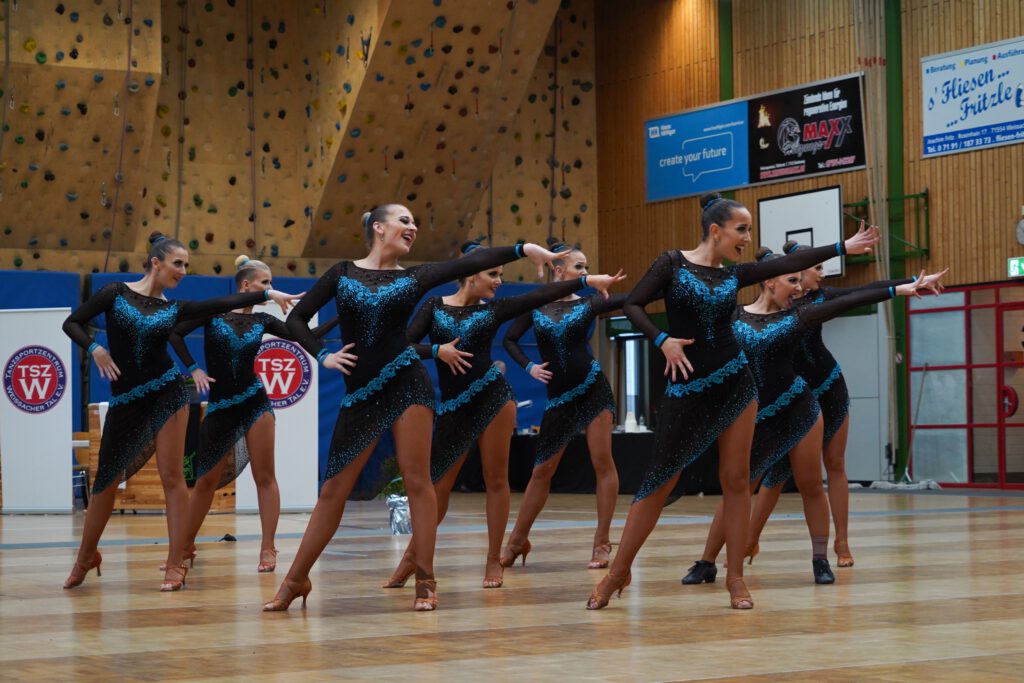 Los ging es am Samstag mit der Regionalliga. In einer sehr gut gefüllten Halle wurde Tanzsport vom höchsten Niveau geboten und alle Teams wurden von dem tollen Publikum unterstützt. Das A-Team tanzte einen sehr starken Durchgang und zog getragen vom Publikum souverän in das große Finale ein. Dort wurde wieder ein sehr starker Durchgang geboten, aber auch die Konkurrenz legte im großen Finale nach. So entschied an diesem Regionalligatag nur Kleinigkeiten über ein Podiumsplatz. Am Ende wurde das A- Team vierter hinter den Team aus Bietigheim, Besigheim und Ludwigsburg. Gerne hätte man dem Heimpublikum einen Podestplatz geschenkt, aber dies wird das A- Team versuchen, in 2 Wochen beim vorletzten Turnier in Bietigheim nachzuholen.
