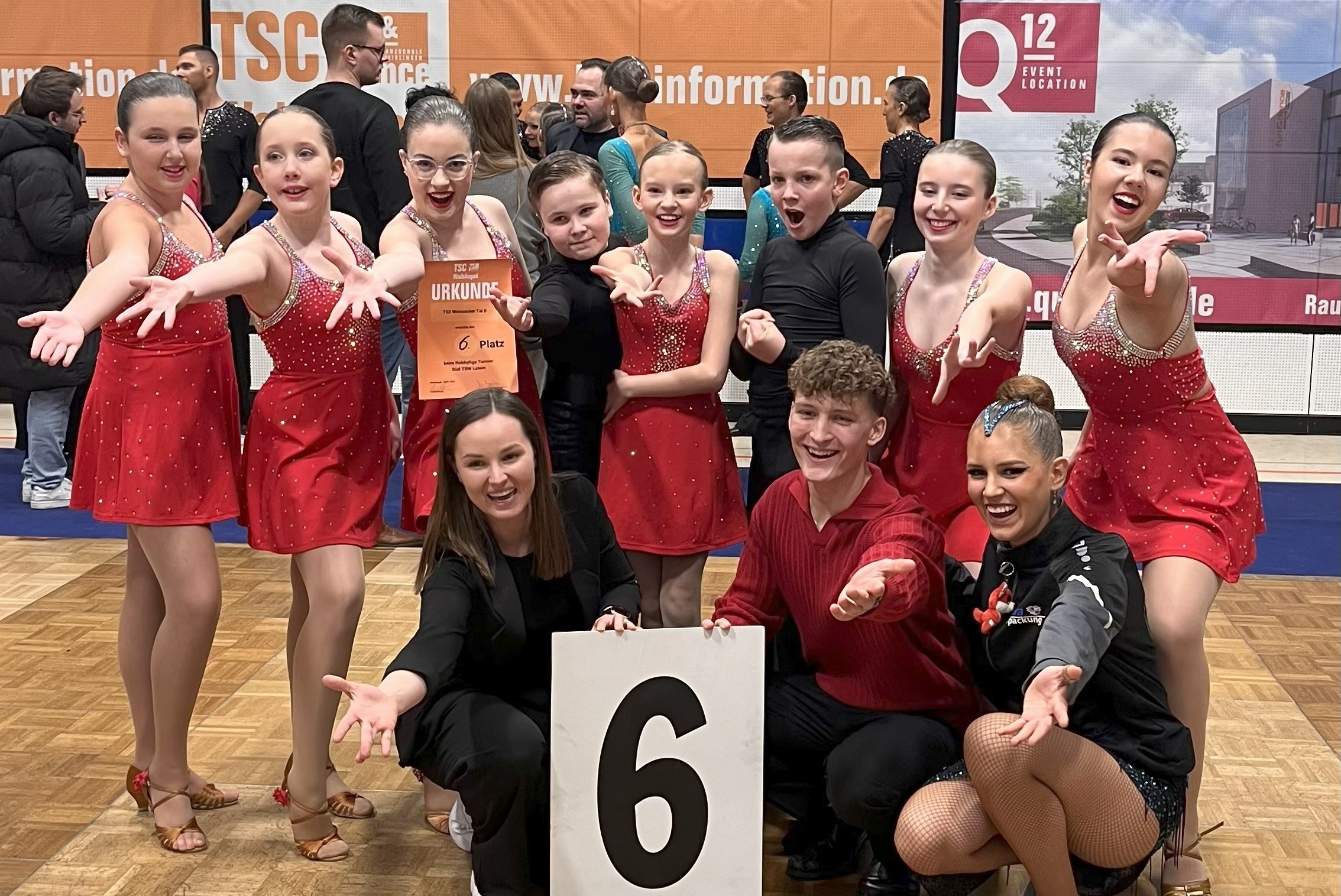 Der Sonntag war den Leistungen des D-Teams gewidmet, welches in der Hobbyliga beeindruckend debütierte. Die sechs Tänzerinnen und zwei Tänzer, angeführt von Ben Schmidt und Saskia Forster, zeigten auf der Turnierfläche mit der Choreographie „Shakira“ großen Einsatz und erreichten mit den Wertungen 8-3-6-7-6 ebenfalls den sechsten Platz.