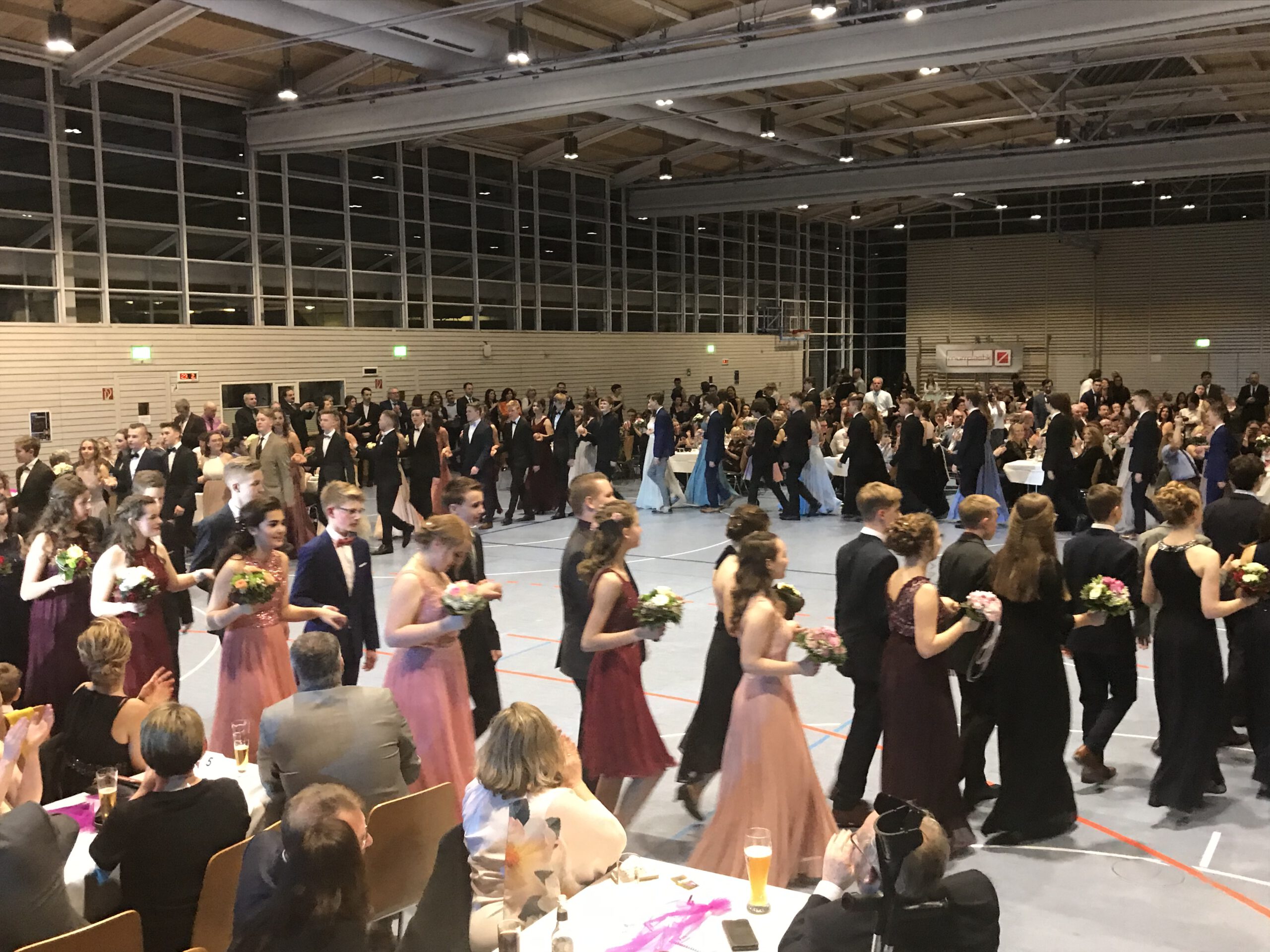 Zu Beginn war noch ein Hauch festlicher Nervosität bei den jungen Debütantinnen und Debütanten zu spüren; doch spätestens mit dem Einmarsch in den Saal und dem ersten Tanz des Abends war alle Anspannung verflogen und die jungen Damen und Herren konnten ihren ersten großen Abschlussball in vollen Zügen genießen. Von Walzer über Rumba, ChaChaCha, Discofox und Jive bis hin zum modernen Freestyle – die Schülerinnen und Schüler zeigten ihren Eltern und den anderen Ballgästen, dass es die Jugend von heute „voll drauf hat“! Und nach jeder Tanzrunde wurden die Damen selbstverständlich stilsicher von ihren Partnern an den Platz begleitet, was bei den „älteren“ Ballgästen große Bewunderung für die jungen Herren hervorrief. Auch bei den Outfits hatten die jungen Leute alles gegeben: Die Damen mit kunstvollen Frisuren, farbenprächtigen Kleidern und passendem Schmuck; die Herren im edlen Anzug, manche von ihnen sogar mit farblich abgestimmter Krawatte oder Fliege!