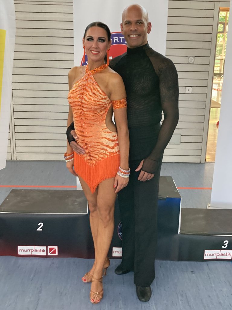 Eine super Leistung bot das erste „Senioren“ Paar Jimmie Ronell Surles / Andrea Lautner Ehrlich von dem Tanzsportzentrum Weissacher Tal in der Gruppe Senioren II S Latein. Nach sage und schreibe „15 Jahren“ Turnierabstinenz verfehlte unser Tanzpaar nur knapp einen Podiumsplatz. Sie könnten sich über einen tollen 4 Platz freuen.