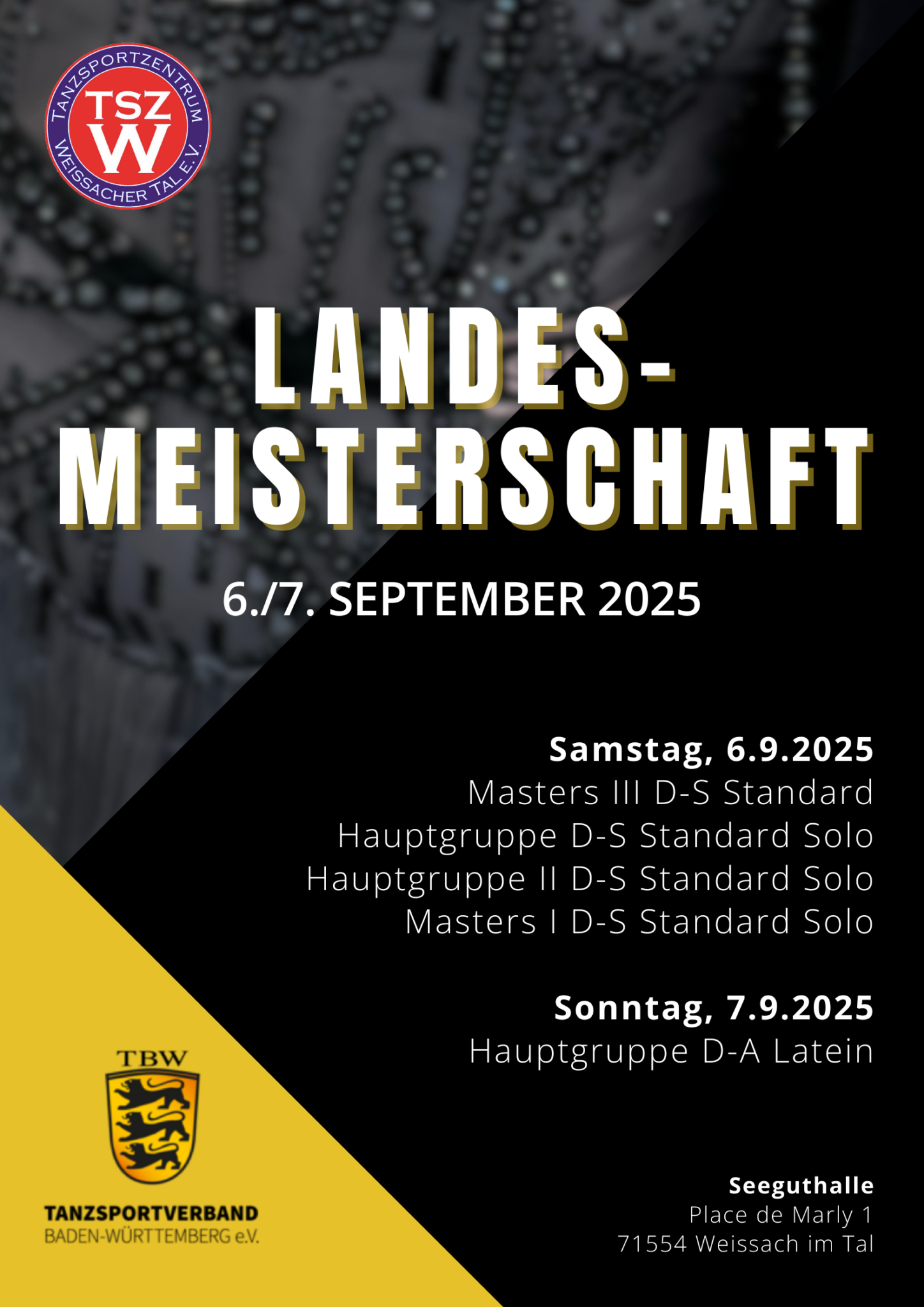 Das Tanzsportzentrum Weissacher Tal richtet zusammen mit dem Tanzsportverband Baden Württemberg (TBW) die diesjährigen Landesmeisterschaften der Senioren sowie der Hauptgruppe S Latein aus. Wir danken dem TBW für das Vertrauen…